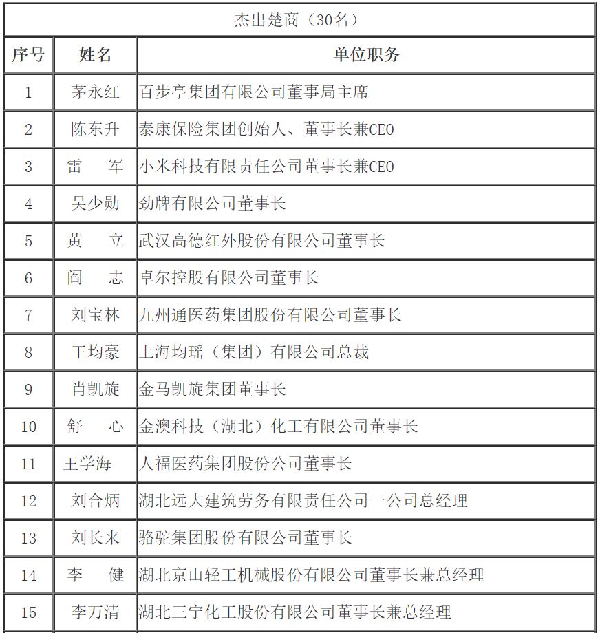 導讀:2019年12月19日至21日,主題為“奮進新時代、筑夢新楚商”的第四屆楚商大會將在武漢召開。除陳東升、雷軍、董明珠等楚商代表外,馬云、劉永好、馮侖等商界大佬也…