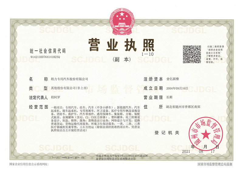 程力最新營業執照,程力專用汽車股份有限公司營業執照,程力新版營業執照,湖北程力汽車營業執照程力汽車官網:m.cghw.com.cn,程力專汽政府和事業單位專用汽車…