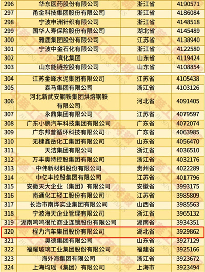 2025年中國名企500強榜單程力汽車集團連續8年入榜