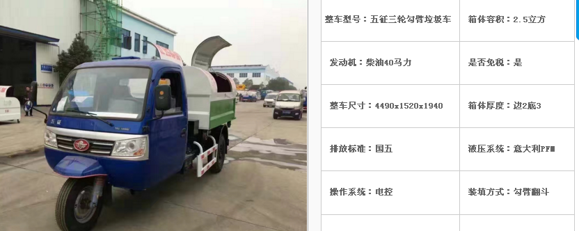五征三輪勾臂垃圾車(上牌農(nóng)用牌照)