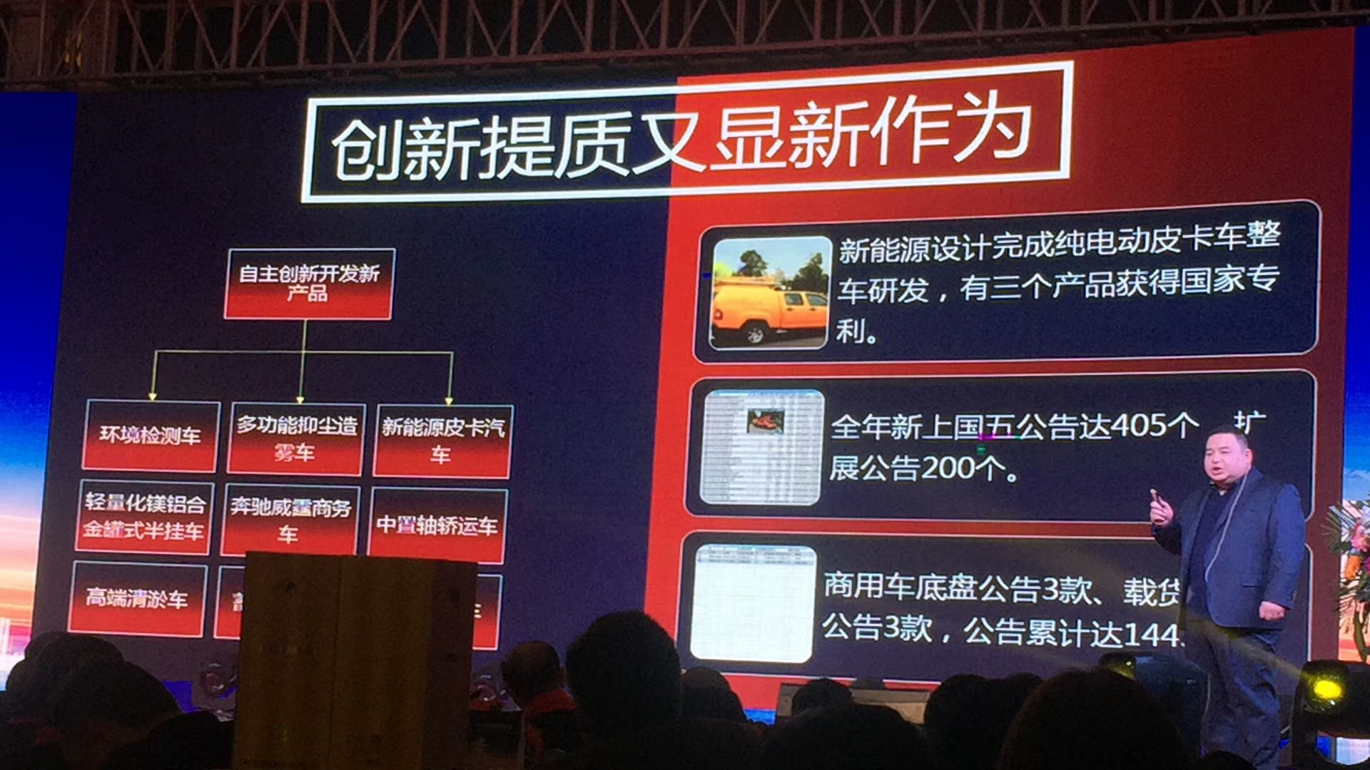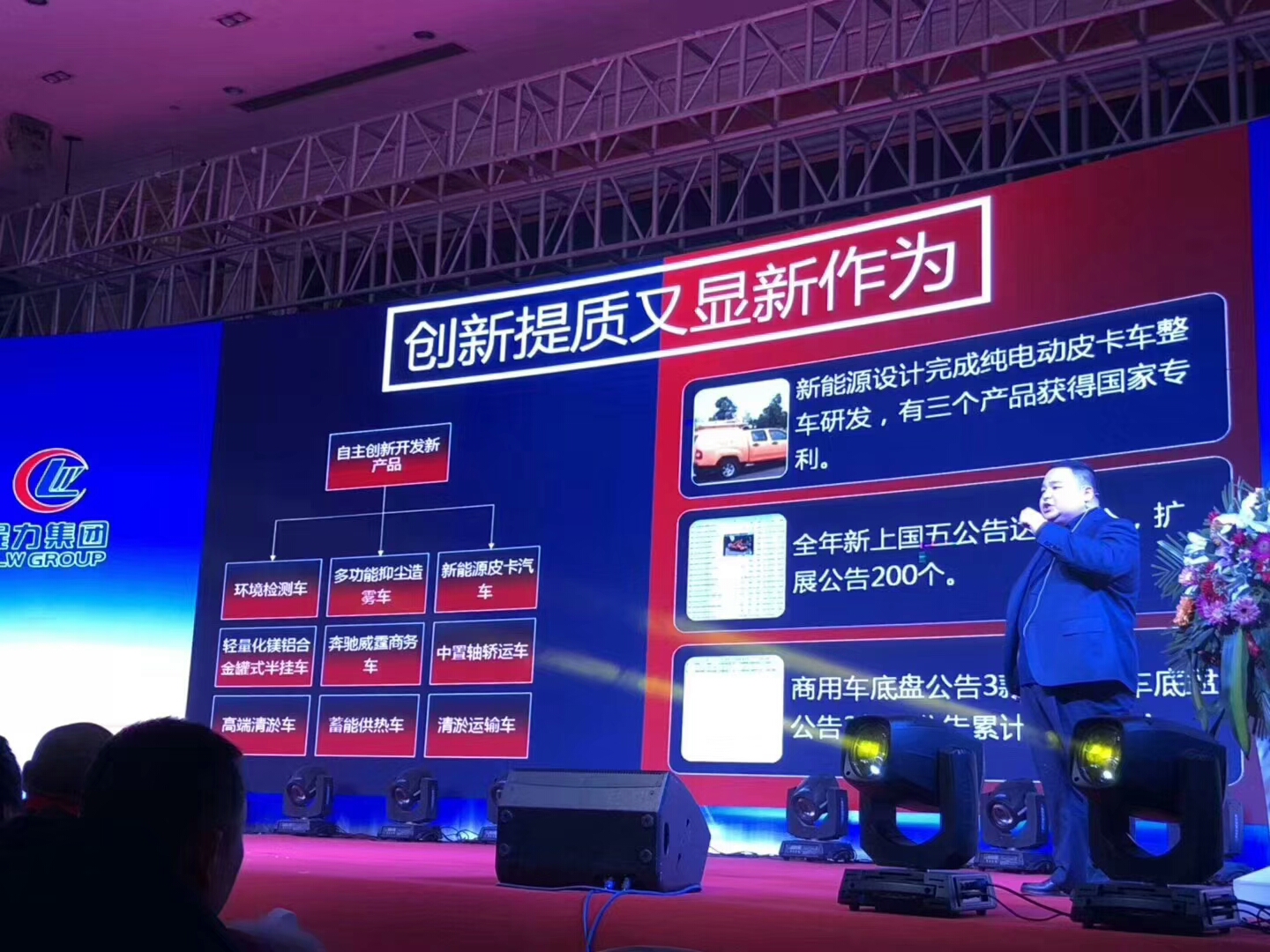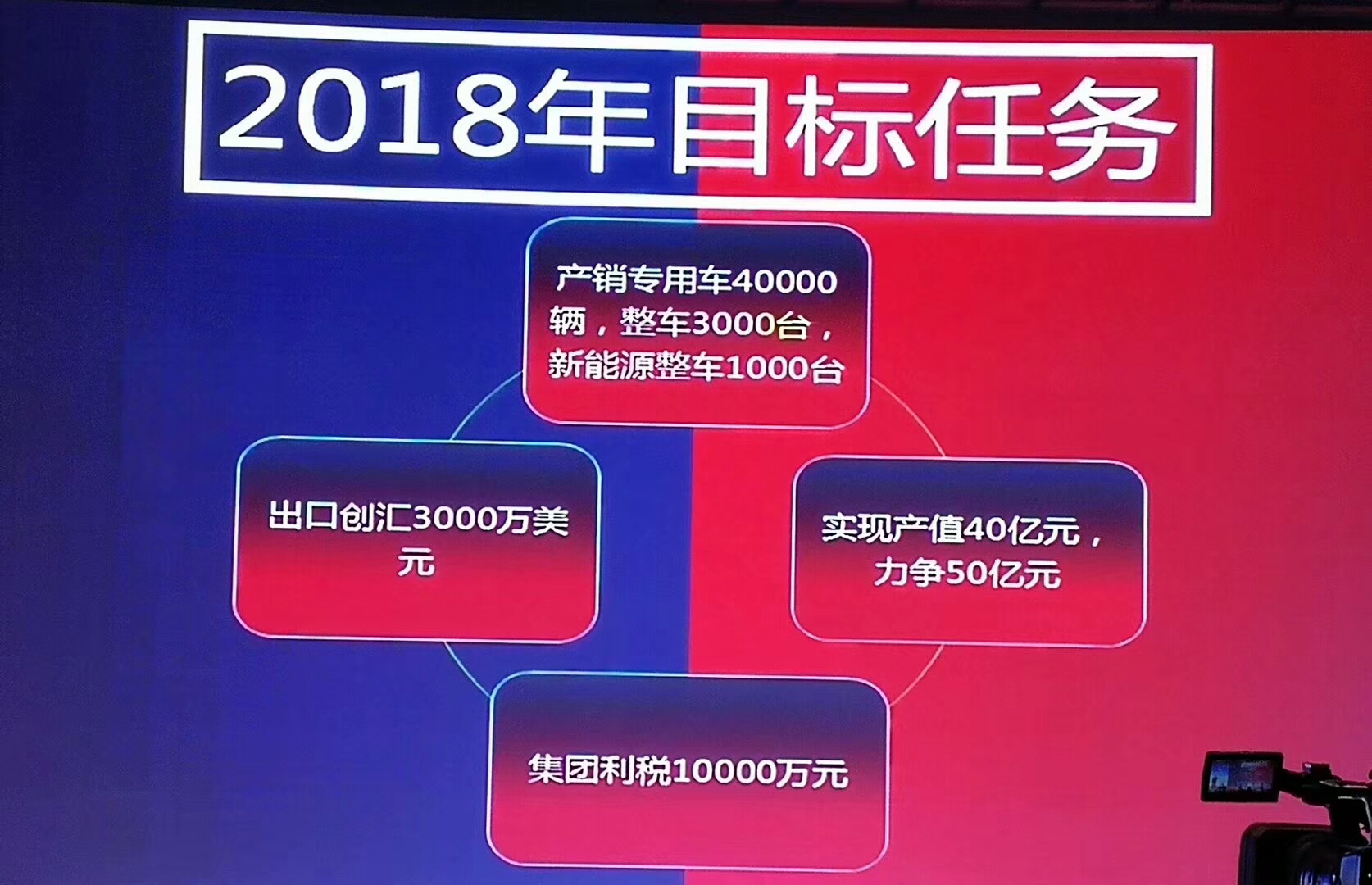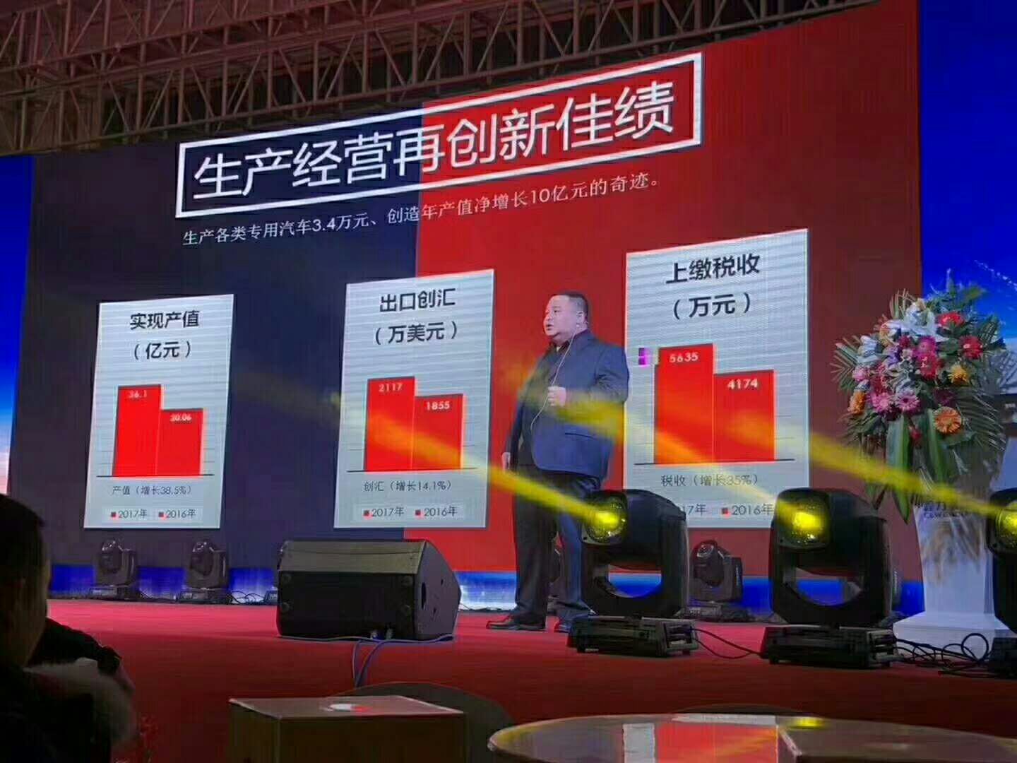 四、2018年目標任務:產銷專用車40000輛,整車3000臺,新能源整車1000臺,實現產值40億元,力爭50億元