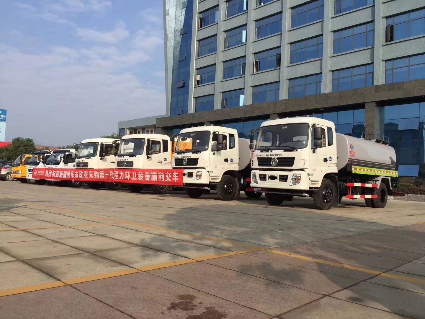 新疆博樂市政府采購湖北程力公司第一批環衛車順利交車