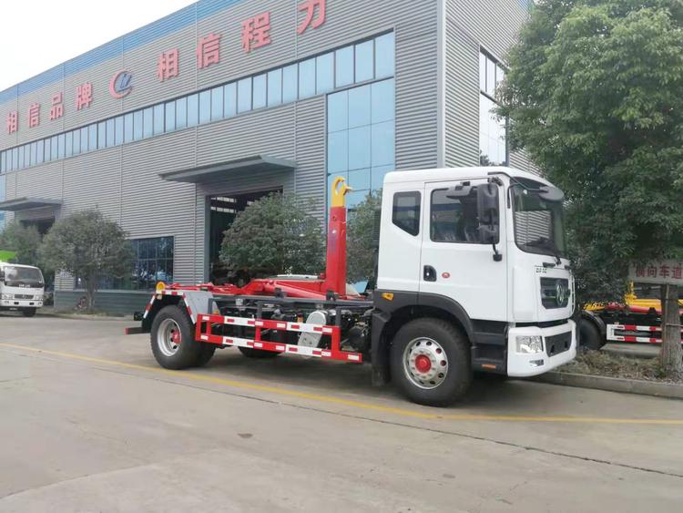 東風多利卡D9勾臂式垃圾車,承載重量12-16噸(垃圾加箱體)。可配套容積8-12方移動壓縮垃圾站或15-18方勾臂垃圾箱。國六排放,柴油發動機。伸縮式套臂,提升重量12噸、16噸可選,加強型副梁,鑄鋼尾托輪,電控+手動操控,帶鎖緊架、鎖緊油缸。液壓完成上箱+下箱+鎖緊+自卸等作業。尾部帶液壓后支腿。 帶自動裝卸垃圾箱功能,配10-16立方鉤臂垃圾箱或者移動壓縮垃圾站。一車可以配多個垃圾廂,帶自卸功能。 | 湖北程力國六D9勾臂垃圾車(車廂可卸式垃圾車)程力威牌CLW5180ZXXE6型車廂可卸式垃圾車圖片價格: