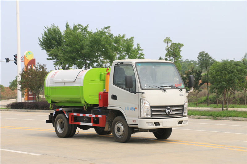 導讀:湖北程力國六凱馬汽油3方藍牌勾臂垃圾車(車廂可卸式垃圾車)…