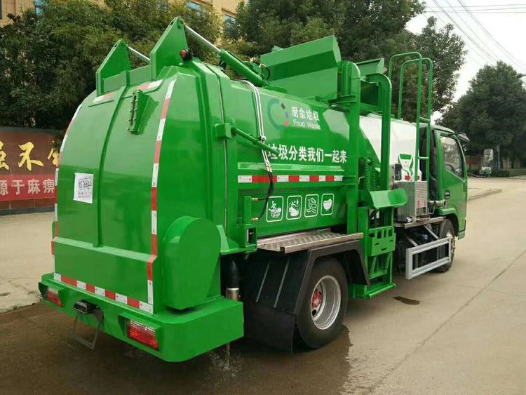 餐廚垃圾車,又稱餐余垃圾車、余廚垃圾車或者泔水車,是用于收集和運(yùn)輸生活垃圾、食品垃圾(泔水)及城市淤泥的專用車輛,改裝部分具有裝、卸垃圾自動(dòng)化程度高、工作可靠、密封性好、裝載容積大、操作簡(jiǎn)便、作業(yè)過(guò)程密閉,無(wú)污水泄露和異味的散發(fā),環(huán)保性好等特點(diǎn)。可配裝載不同規(guī)格的標(biāo)準(zhǔn)垃圾桶,具有廣泛的適用性。 該車型外形美觀,性價(jià)比高、安全可靠、駕駛便捷。主要用于收集與轉(zhuǎn)運(yùn)餐飲業(yè)、賓館、單位食堂等產(chǎn)生的餐廚垃圾,也可用于收集與轉(zhuǎn)運(yùn)居民小區(qū)廚余和生活垃圾。 上裝由箱體、后門機(jī)構(gòu)、密封鎖緊機(jī)構(gòu)、推板機(jī)構(gòu)、掛桶機(jī)構(gòu)及操縱機(jī)構(gòu)組成。 餐廚垃圾車主要性能及配置: 固液分離: 將桶裝餐廚泔水垃圾經(jīng)專用提升架緩緩上提,在車頂部倒入車廂內(nèi),被投放的垃圾經(jīng)過(guò)強(qiáng)有力的推板擠壓,垃圾箱底部與推鏟板面設(shè)置大量過(guò)濾孔,可真正實(shí)現(xiàn)箱內(nèi)餐廚垃圾固液的初步分離,被分離的液體進(jìn)入箱體底部的污水箱,固體垃圾被壓縮儲(chǔ)存在罐體,體積變小,如此反復(fù)待裝滿后送至餐廚垃圾資源優(yōu)化處理廠卸料。餐廚垃圾裝載由垃圾桶提升系統(tǒng)完成,該系統(tǒng)具有垃圾桶鎖止結(jié)構(gòu),裝卸安全可靠。垃圾桶與垃圾投入口銜接好,保證裝卸過(guò)程中餐廚垃圾不溢撒、不遺漏。垃圾投入口與推板之間有足夠距離,推板與罐體內(nèi)表面設(shè)有密封裝置,避免餐廚垃圾投入過(guò)程及分離過(guò)程中溢到推板后方。 液壓系統(tǒng)由泵、液壓閥和順序閥以及各種功能的液壓油缸、高低壓管路組成。關(guān)鍵部件可選用原裝進(jìn)口,保證產(chǎn)品工作可靠、安全 罐體內(nèi)分上、下兩層,下層為固液分離后污水收集箱,污水箱兩頭高,中間低,設(shè)有排污口,以保證污水排放干凈。 湖北程力國(guó)六5方多利卡福瑞卡餐廚垃圾車(廂式方罐)程力威牌CLW5073TCA6型餐廚垃圾車CLW5040TCALS6型餐廚垃圾車多方位圖片: