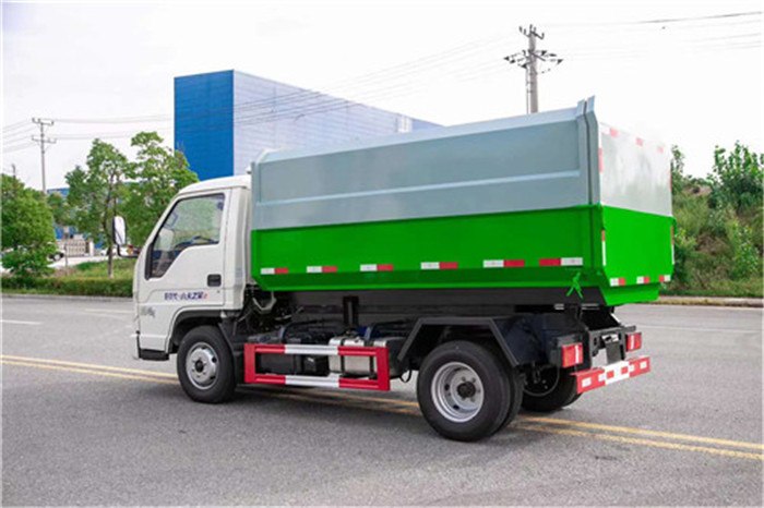國六福田時代小卡之星2柴油5方掛桶垃圾車整車型號CLW5041ZZZ6CD型自裝卸式垃圾車,底盤型號BJ1045V9JB3-55,總質量(Kg)4495,額定載質量(Kg)1765,整備質量(Kg)2600,駕駛室準乘人數(人)2,外形尺寸(mm)4815×1830×2300mm,燃料種類:柴油, 國六福田時代小卡之星2柴油5方掛桶垃圾車底盤采用福田時代小卡之星2車身、1580mm寬駕駛室,全柴95馬力(Q23-95C60)、單排前翻、5檔、6.00R16鋼絲胎、動轉、ABS、可調方向盤、電控熄火、巡航、可調大燈、剎車自調臂, 國六福田時代小卡之星2柴油5方掛桶垃圾車上裝配置:箱體采用邊三底三碳鋼板制作,箱體前部側面帶有掛桶提升機構,可自動舉升垃圾桶倒入垃圾,帶自卸功能,帶掛桶提升機翻蓋尾部裝有橡膠密封條,防污水滴漏,掛桶垃圾車可根據客戶要求搭配120升或240升塑膠桶。