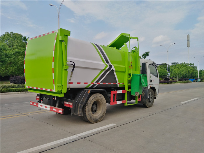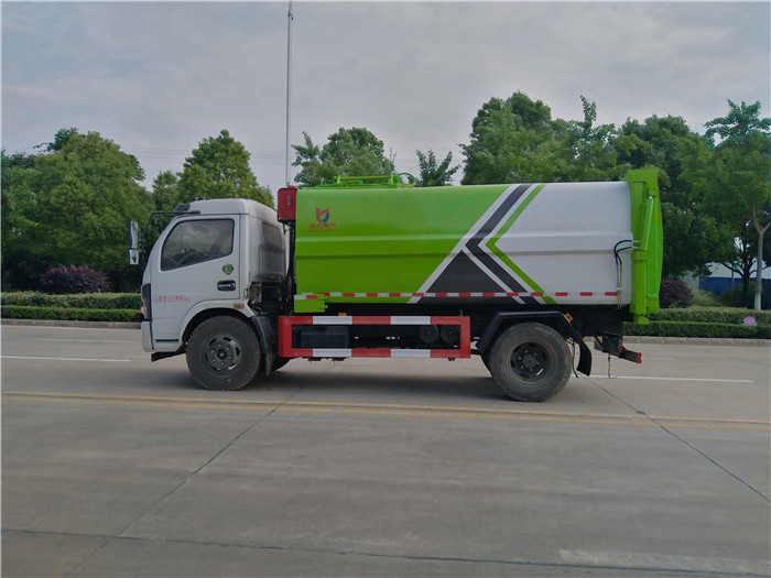 國(guó)六東風(fēng)大多利卡側(cè)裝壓縮掛桶自裝卸式垃圾車箱體為圓弧形新型加強(qiáng)型,箱體容積7.5 立方,壓縮方式為液壓底推推板,提升機(jī)為機(jī)拉桿式,后門(mén)液壓反向鎖死,箱體材料為Q345B錳鋼制作,材料厚度為4個(gè)厚,液壓閥為中梅或長(zhǎng)源牌,液壓缸為海普瑞斯,齒輪泵為合肥長(zhǎng)源牌,箱體尾部加裝污水槽,可有效防止垃圾二次污染。