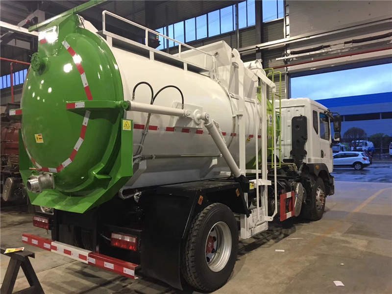 底盤配置:東風(fēng)D9餐廚垃圾車專用底盤,康明斯210馬力國六發(fā)動機(jī),6檔變速箱,295真空胎,3950軸距,空調(diào),ABS,自動調(diào)節(jié)臂,電動玻璃,行車記錄儀。 上裝配置: 罐體采用 4mm 優(yōu)質(zhì)碳鋼制作,圓形罐體,罐體前后封頭采用圓弧蝶形封頭,配拉桿式提升機(jī),可掛120/240升垃圾桶,罐體底部配雙缸液壓舉升自卸,罐體尾門液壓打開和鎖緊+手動鎖緊裝置,罐內(nèi)設(shè)固液分離裝置,罐尾設(shè)液體自流閥,液位窗,后門液壓開啟,帶工具箱,洗手裝置。 |