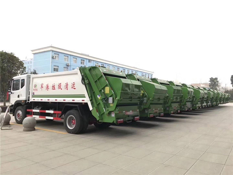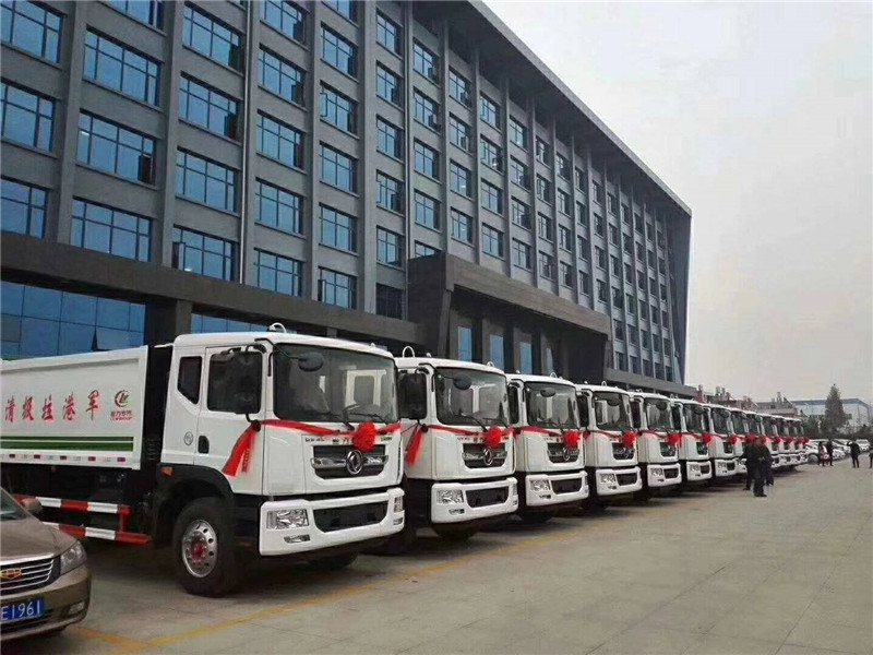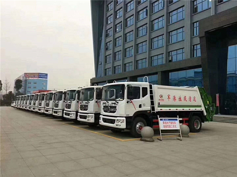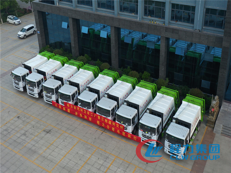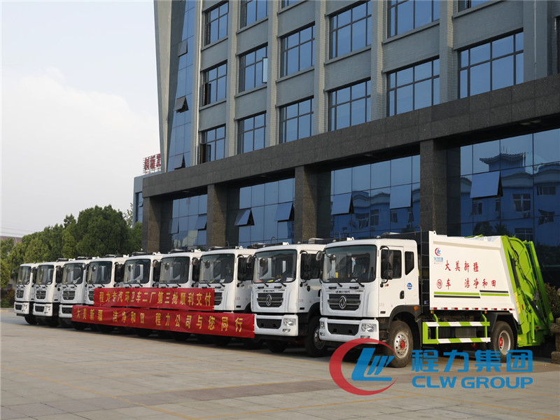 湖北程力批量環衛垃圾車壓縮垃圾車發車圖片,東風D9多利卡12-14方壓縮垃圾車批量發車圖片: