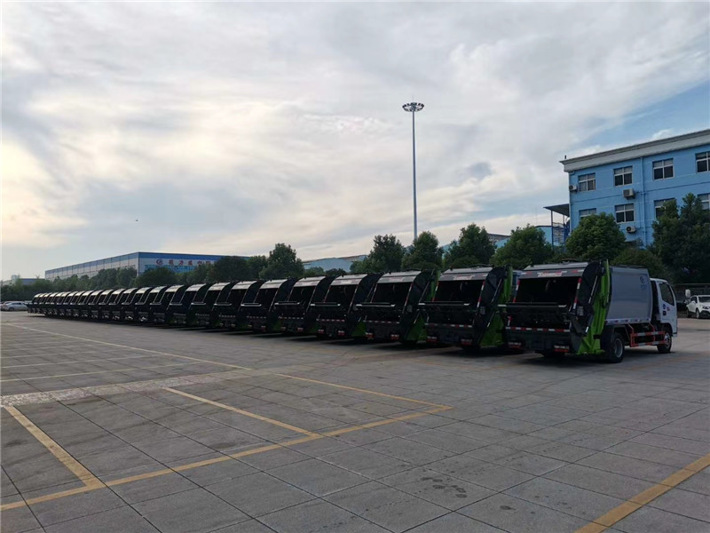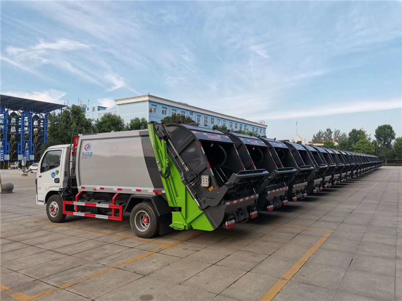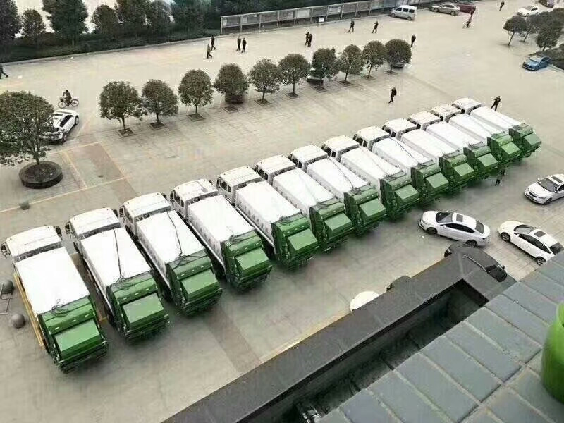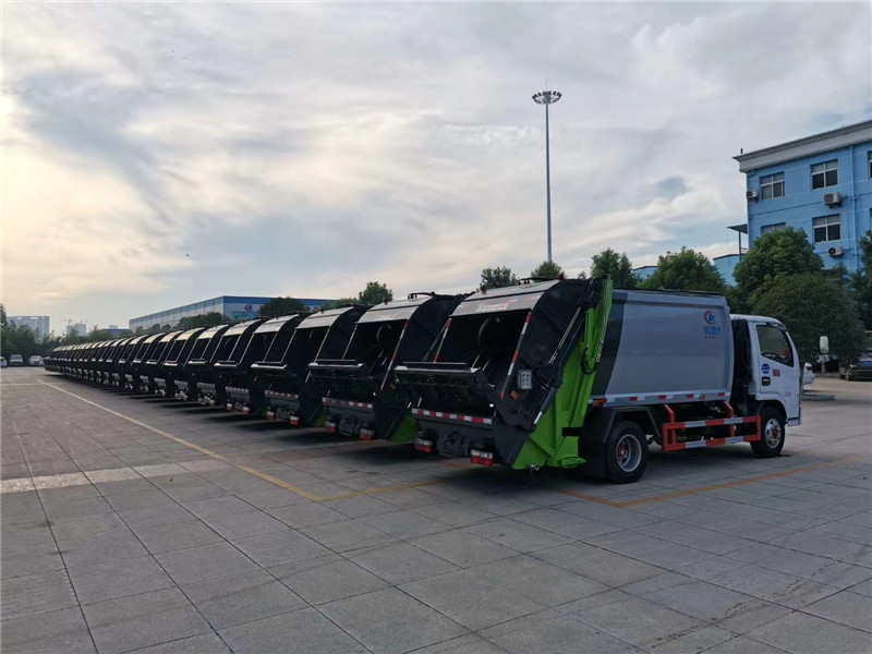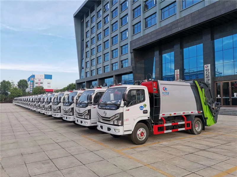 湖北程力批量環衛垃圾車壓縮垃圾車發車圖片,東風多利卡5-6方壓縮垃圾車批量發車圖片