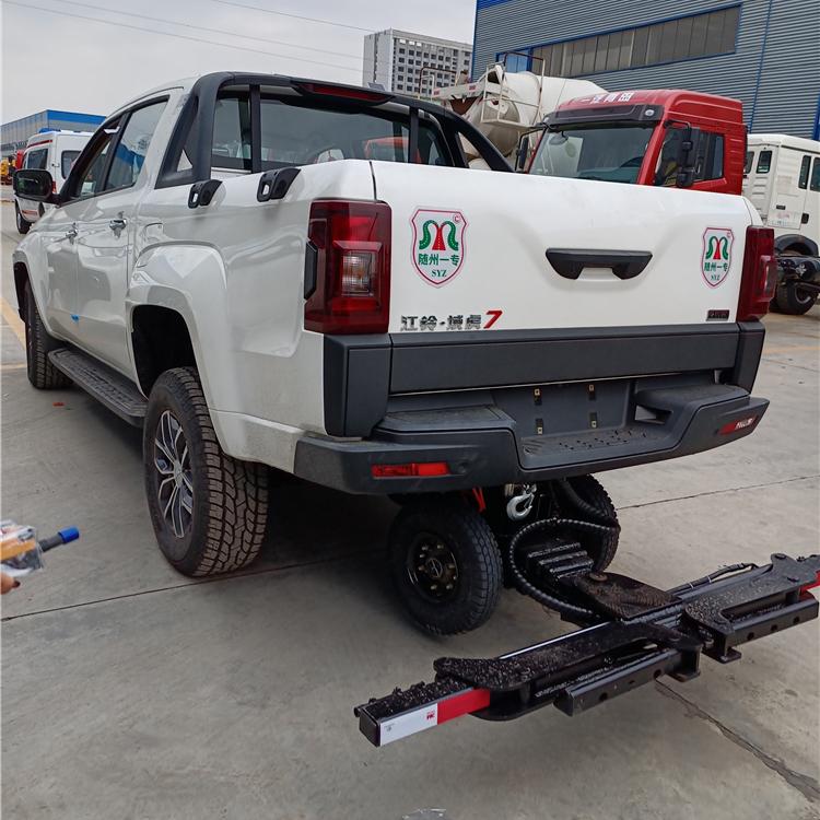 湖北程力國六江鈴域虎7皮卡清障車四驅(qū)皮卡拖車程力牌CL5030TQZ6ZK型清障車廠家配置: 地庫救援皮卡清障車,此款車型有公告,可正常上戶。該車采用江鈴域虎皮卡底盤改裝,全自動夾緊裝置,因為車身短、高度低,特別適合地下車庫的車輛救援。 江鈴域虎7皮卡手動擋皮卡清障車配置:選用國六域虎7皮卡底盤,國六B級排放標(biāo)準(zhǔn)福特發(fā)動機(jī)141馬力,6擋變速箱,中冷增壓柴油發(fā)動機(jī),分時高低速四驅(qū),3085軸距,冷暖空調(diào),真皮座椅,原廠倒車影響,ABS,265,70R16真空越野胎,多功能方向盤,電動玻璃遙控一鍵啟動功能。前后碟剎,鋁合金輪轂,腳踏板2.0T排量,貨箱噴涂。 江鈴域虎7皮卡手動擋皮卡清障車上裝配我廠最新款 第五代專利 產(chǎn)品萬向輔助輪,配無線遙控器真正的全自動抱胎,備用線按鈕,鋼板加強(qiáng),3噸電動液壓單元,雙油缸托3節(jié)伸縮托臂,進(jìn)口部件,進(jìn)口油封,全自動抱胎,贈萬向輔助小車2個,4條綁帶,贈送前配重。 第五代上裝~帶萬向輔助輪后托臂,依據(jù)力學(xué)原理,優(yōu)化設(shè)計,根據(jù)拖車的重量遙控調(diào)節(jié)輔助輪的相應(yīng)高度,車速輕松跑;規(guī)避了已經(jīng)淘汰的第三代國定輔助輪拖臂因不能調(diào)節(jié)摩擦力大速度受限帶來的一系列問題(限速、費(fèi)油、摩擦大引起的爆胎。 湖北程力國六江鈴域虎7皮卡清障車四驅(qū)皮卡拖車程力牌CL5030TQZ6ZK型清障車圖片價格: