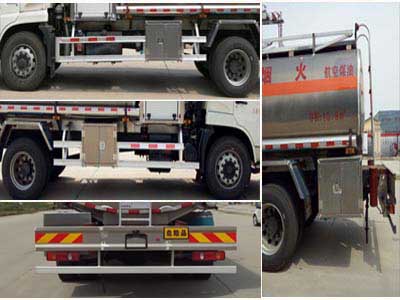 1、該車適用于危險品運輸。類項號:3;罐體有效容積:5.09立方米,罐體外形尺寸 (長×寬×高) (mm):4000×1750×1150(罐體前部900mm的位置安裝加油機,當加油機裝置選裝下掛式時,右側防護由工具箱代替,且罐體尺寸為4000mm×1700 mm×1100 mm)。2、該車可裝配;恒和嘉華牌 ,伯萊牌,正星牌,恒山牌,華特牌數控加油機,其型號對應為: SKES-1112,SKDS-2001A,SC20D1110F,HS1812B,HT-YV60E,對應生產廠家為:恒和嘉華科技有限公司 ,上海伯萊機械有限公司,正星科技有限公司,托肯恒山科技(廣州)有限公司,隨州市華特專用設備有限公司。3、車輛顏色和文字噴涂位置可變化。4、防護材料:Q235A碳鋼,連接方式:左右側面及后下部防護均采用焊接連接,后部防護斷面尺寸(mm):200×50,后部防護離地高度(mm):530。5、隨底盤選裝駕駛室,僅選用裝子午胎型號(7.00R16LT 14PR),限速裝置,輔助制動裝置和前盤制動器的底盤;該車應裝具有衛星定位功能的行駛記錄儀。6、ABS廠家及型號:襄陽東風隆誠機械有限責任公司/ABS/ASR-24V-4S/4M。7、危險貨物運輸車輛的車輛類型(FL型車輛)。